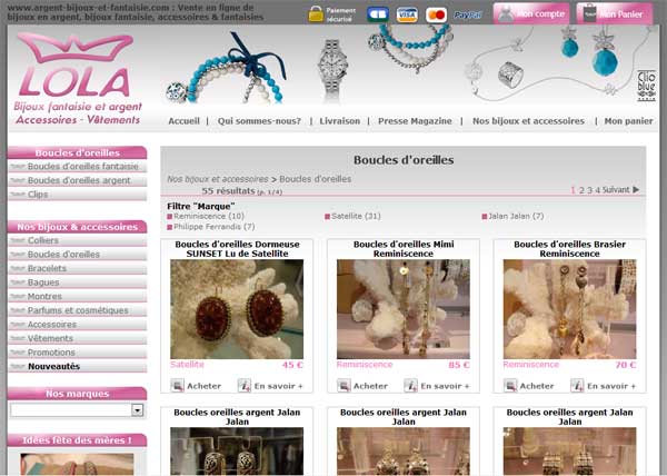 Lola bijoux Adresse : Bijoux-argent-et-fantaisie.com est une boutique de vente en ligne de bijoux fantaisie. retrouvez les catégories 'collier argent', 'collier fantaisie', 'bague fantaisie', 'bague argent'. Retrouvez les grandes marques telles que Clio Blue, Reminiscence, Philippe Ferrandis, Jalan Jalan, Ginette NY, La Clepsydre, N2 |